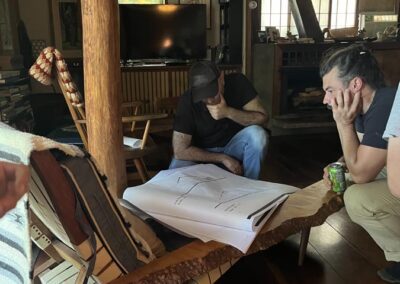 In 2024, we received matching grants from the Johanna Favrot Fund of the National Trust for Historic Preservation and the Keystone Historic Preservation Planning Program. The project team, consisting of Mira Nakashima, President, Zoriana Siokalo, Administrator/Grants Manager, David Long, Archivist, and Lauren Griffin, Programs Coordinator and Assistant Archivist, and John Lutz, General Manager of George Nakashima Woodworkers, worked with colleagues from the University of Pennsylvania Department of Historic Preservation Chair Frank Matero, Senior Research Associate John Hinchman, Research Associate Mojtaba Saffarian, Curator and Architectural Historian William Whitaker, and Environmental Engineer Michael Henry, and Conservator Wendy Jessup.