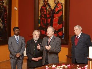 On the occasion of this auspicious event in south India at 5pm, concurrent gatherings occurred around the Nakashima Altar for Peace in the Cathedral of St. John the Divine in NYC at 6:30am, and the Sacred Peace Table in the Hall of Peace at the Russian Academy of Arts in Moscow at 3:30pm. Each location created a unique moving experience touching all who attended. The global unifying factor was the lighting of a candle on the Sacred Peace Tables and Altar, the sincerity of the participants’ aspirations, flower offerings and the recitation of a Blessing contemporaneously at the beginning of each ceremony in honor of the dedication of The Hall of Peace.