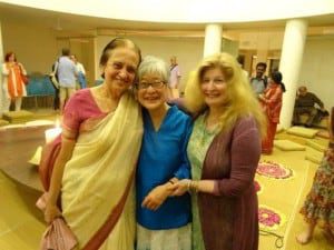Left to right: Gauri Pinto, Mira Nakashima-Yarnall, Miriam Belov, board member. Gauri, a close friend of Mira’s, is the daughter of Udar and Mona Pinto, early ashramites. Udar was a collaborator with George Nakashima on building Golconde which is often considered the 1st modern building in India, and Mona oversaw managing the guesthouse for many years and maintained it impeccably.